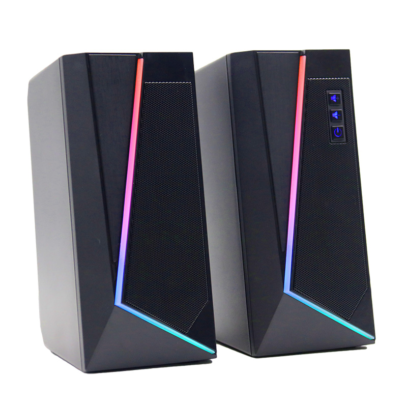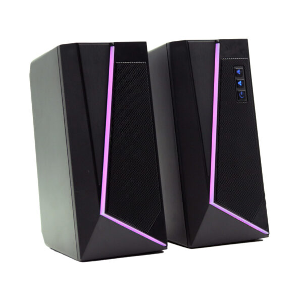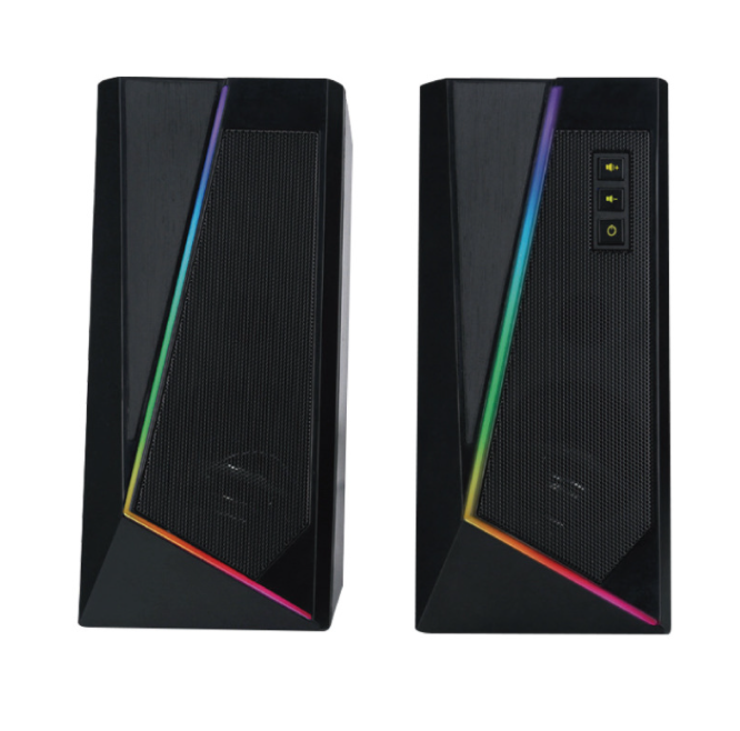 SD-2518 RGB Desktop Speakers, 2.0 Channel PC Computer Stereo Speaker with 6 Colorful LED Modes, Enhanced Sound and Easy-Access Volume Control, USB Powered w/ 3.5mm Cable