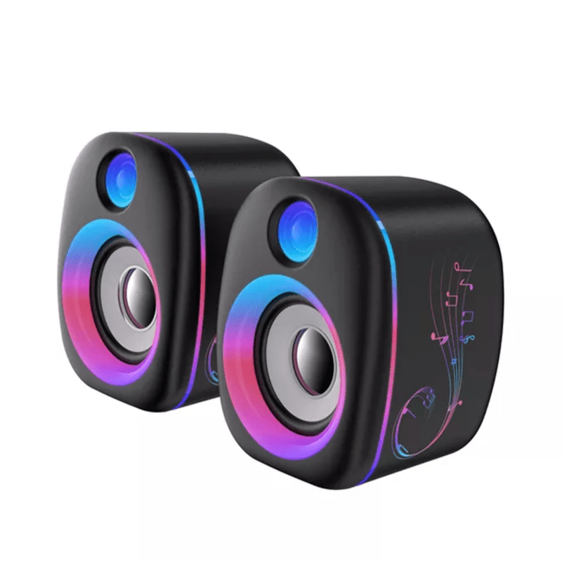 SD-1075 Desktop Speakers, 2.0 Channel PC Computer Stereo Speaker with 6 Colorful LED Modes, Enhanced Sound and Easy-Access Volume Control, USB Powered w/ 3.5mm Cable