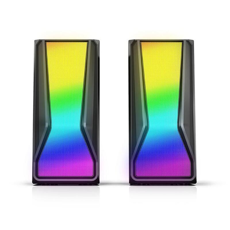 SD-2518 RGB Desktop Speakers, 2.0 Channel PC Computer Stereo Speaker with 6 Colorful LED Modes, Enhanced Sound and Easy-Access Volume Control, USB Powered w/ 3.5mm Cable
